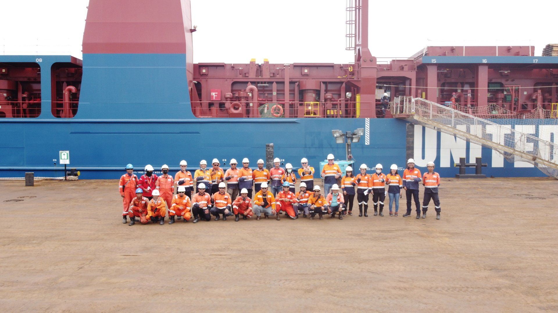 A photo of BOMC team during load out of wedges, skidding beam and shoes with no LTI recorded. Well done to the team for achieving another great milestone.