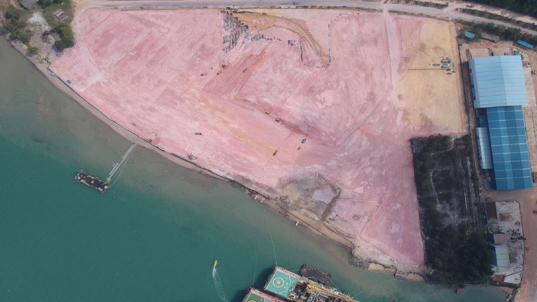 The 200 meter jetty (at 14 meters LAT) is nearly complete and the facility will be operational by mid December 2018.
